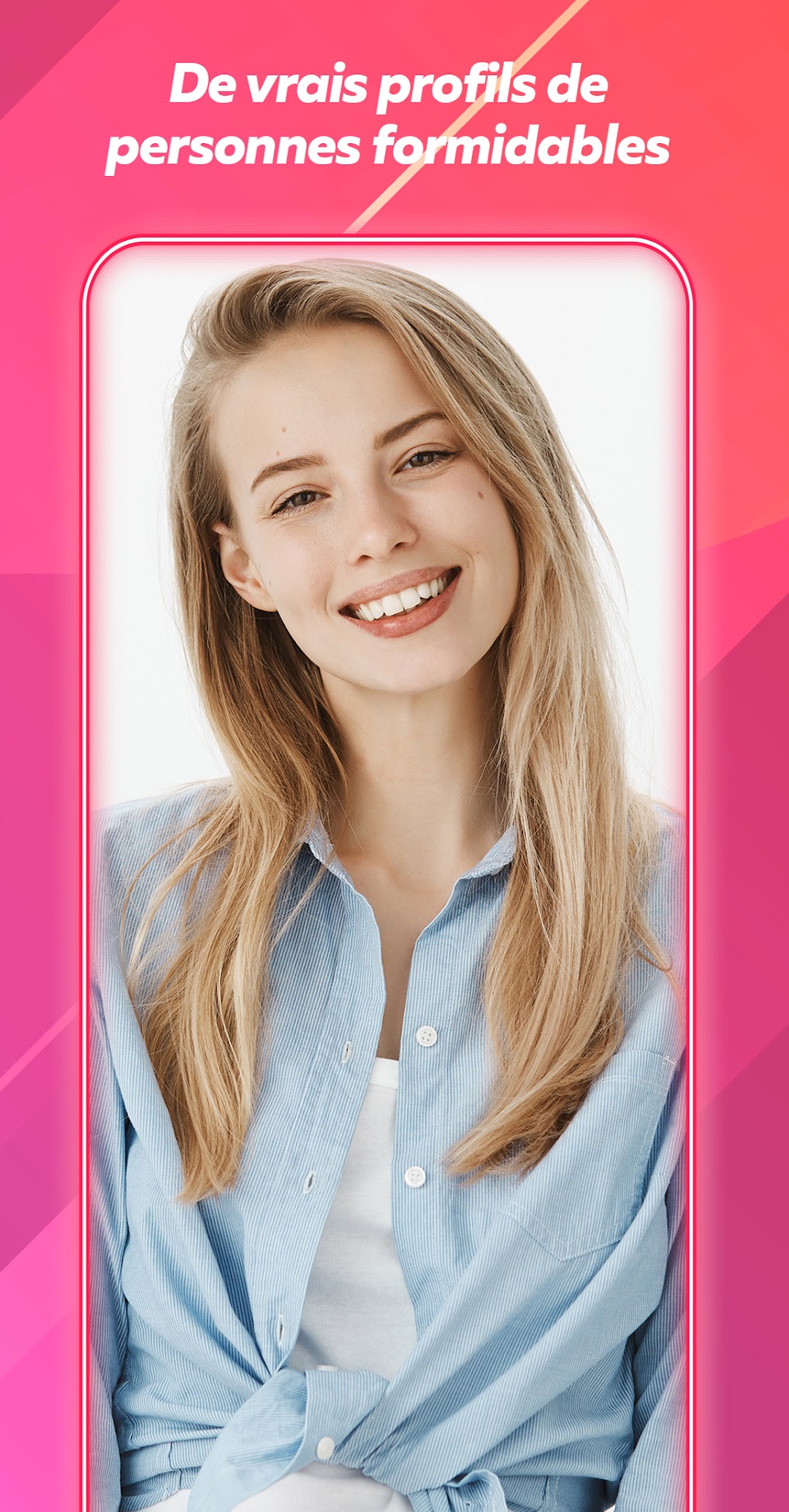 Nous avons le remède à votre ennui ces jours-ci - parlez en appel vidéo avec des gens du monde entier qui sont comme vous ! Notre application vous permet d’éviter les textos sans fin et de commencer à parler instantanément aux gens en appel vidéo. Pour commencer c’est super facile: créez un profil, et notre algorithme s’occupera du reste pour que vous puissiez créer des liens uniques.